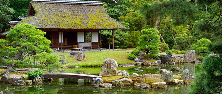Los jardines tradicionales de Japón, a diferencia de los jardines occidentales, tienen la peculiaridad de que son creados con curvas y de manera asimétrica. Dentro de estos jardines la naturaleza es representada mediante la colocación calculada de árboles, hierba, flores, agua y rocas. Pero no se trata de una reproducción pictórica, sino de construir una representación selectiva de un microcosmos ideal. Su encanto reside en que ofrece a la persona que los recorre un entorno silencioso ideal para reflexionar sobre sí misma.