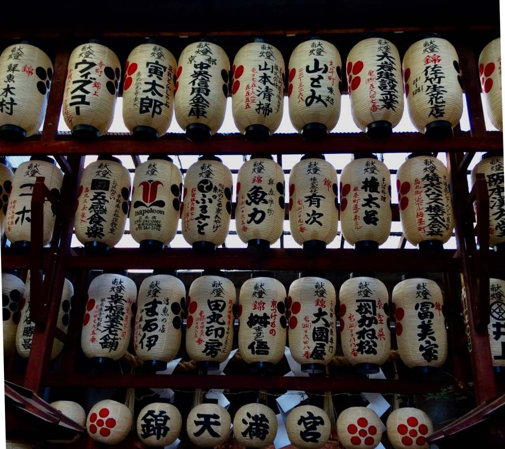 Más tarde, todavía procedente de China, fue el marco de bambú rectangular, redondo o cilíndrico cubierto de papel o seda el que hizo su entrada en Japón e invadió la vida cotidiana. Estos últimos, más cercanos a los faroles, se llaman Chōchin y se cuelgan o se colocan en el suelo. Se pueden encontrar por todas partes, alineados frente a los templos o a la entrada de los restaurantes, durante los festivales y, sobre todo, en homenaje a los antepasados fallecidos durante la ceremonia Urabon-kyō, en la que flotan por cientos en lagos y ríos.